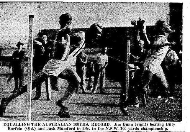The young university runner Brian Dunn equalled the 9-year old Carlton mark of 9.6 to win the NSW Championships.