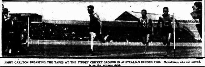 Jim Carlton made a well publicised attempt on the Australian 100 yards record during the tea interval of the second elevens match at Sydney Cricket Ground. A special grass track had been prepared for the attempt and ran from east to west as previous runs weren’t recognised as official as they were run on a sloping north to south ground.
