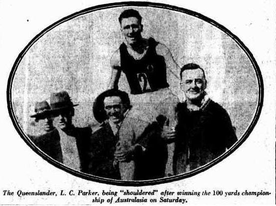 Before a crowd of 25,000 in Brisbane, Les Parker, a “Bananalander”, won the Australian and New Zealand Track and Field Games Championships.