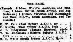 References: Athletics Australia Almanac, Trove, Sydney Morning Herald Archives, NSW State Library