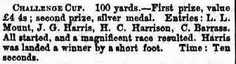 The 100 yards was part of a Challenge Cup, a points score event won by Harrison to decide the best all-round runner, which included the 440 yards and half-mile.